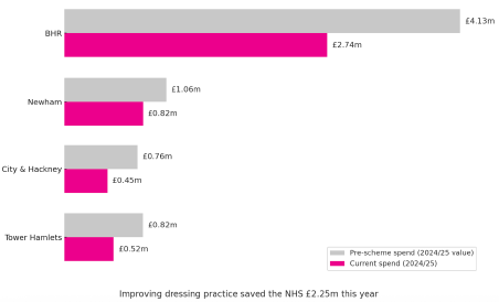 Savings achieved through the Dressing Optimisation Scheme across North East London